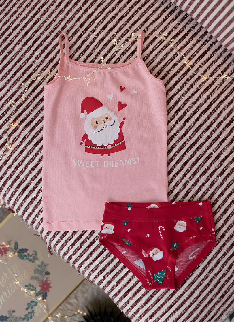 Majica sa tankim bretelama za djevojčice, neodoljivim printom inspirisan novogodišnjim motivima , dio je naše Holly Jolly Christmas. Izrađena je većinski od pamuka, sa malim dodatkom elastina. Ova mješavina materijala obezbijedila je našim djevojčicama nježan dodir na koži i savršenu udobnost. Cijena artikla zavisi od veličine koju izaberete.